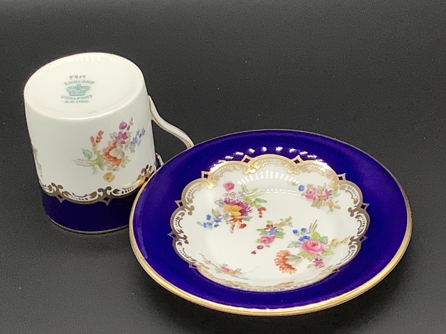 イギリス コールポートのデミタスカップです。 美しいコバルトブルーにコールポートらしい可憐な小花のデザインが調和し、優雅な雰囲気です。 100年以上前のお品ですが、状態はパーフェクトです。 サイズ カップ直径4.6cm高さ5.2cm ソーサー直径10cm高さ1.5cm