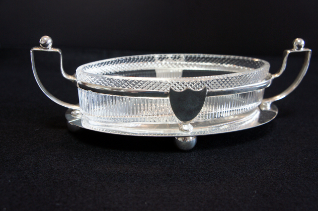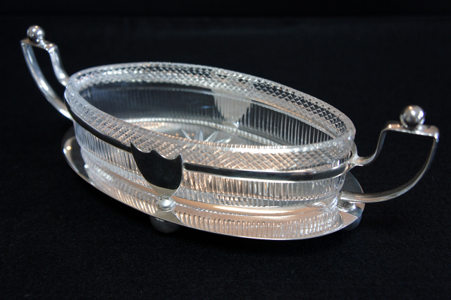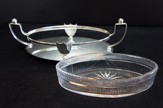 イギリス 1890年頃のシルバープレートスタンドxグラスディッシュです。